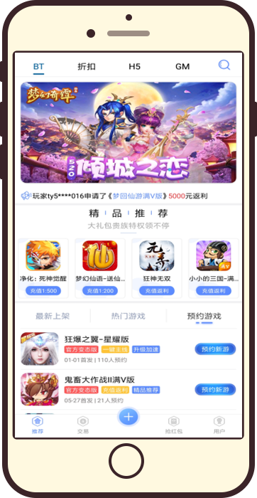 【98游戏平台】为热衷手机游戏用户量身定制的手游盒子APP,汇聚全网BT手游、变态手游、折扣手游、GM游戏,上线送满级VIP,无限元宝,变态爆率,GM特权,BT游戏。还可享受无限刷元宝、任意转区等特权。